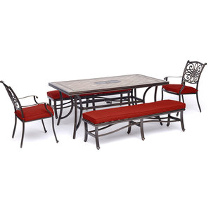 Outdoor Dining Set Benches / Monaco 6 Piece Patio Dining Set In Red Dining Chairs Bench And Tile Top Table Mediterranean Outdoor Dining Sets By Shop Chimney Houzz / Generously proportioned dining chairs features a solid premium teak.